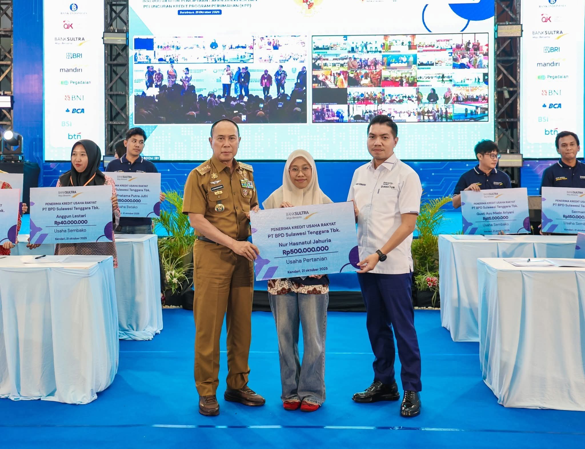 BIKASMEDIA.COM, KENDARI – Pemerintah Provinsi Sulawesi Tenggara (Sultra) menjadi bagian dari pelaksanaan Akad Massal Kredit Usaha Rakyat (KUR) 800.000 Debitur untuk Penciptaan Lapangan Kerja dan Peluncuran Kredit Program Perumahan (KPP) yang digelar secara serentak di seluruh Indonesia pada Selasa, 21 Oktober 2025.