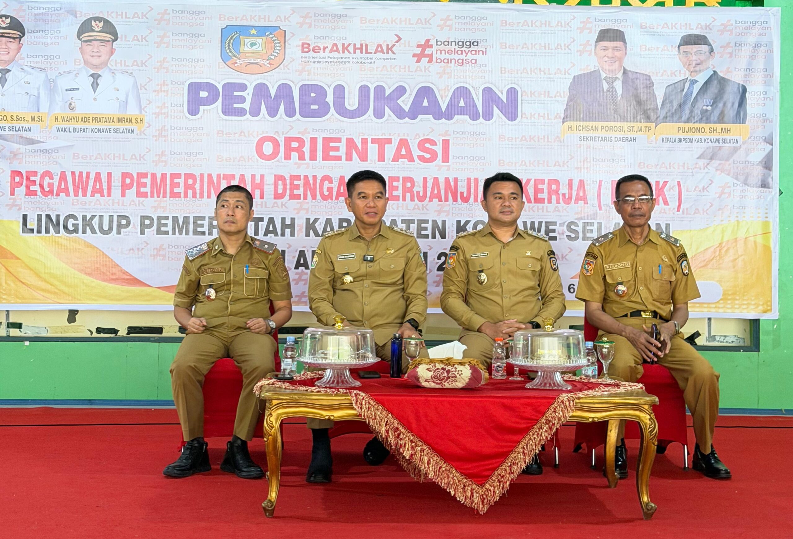 BIKASMEDIA.COM, KONAWE SELATAN – Bupati Konawe Selatan, Irham Kalenggo, secara resmi membuka kegiatan Orientasi Pegawai Pemerintah dengan Perjanjian Kerja (PPPK) lingkup Pemerintah Kabupaten Konawe Selatan Tahun 2026. Acara tersebut berlangsung khidmat bertempat di Islamic Center Andoolo, Senin (9/2/2026).