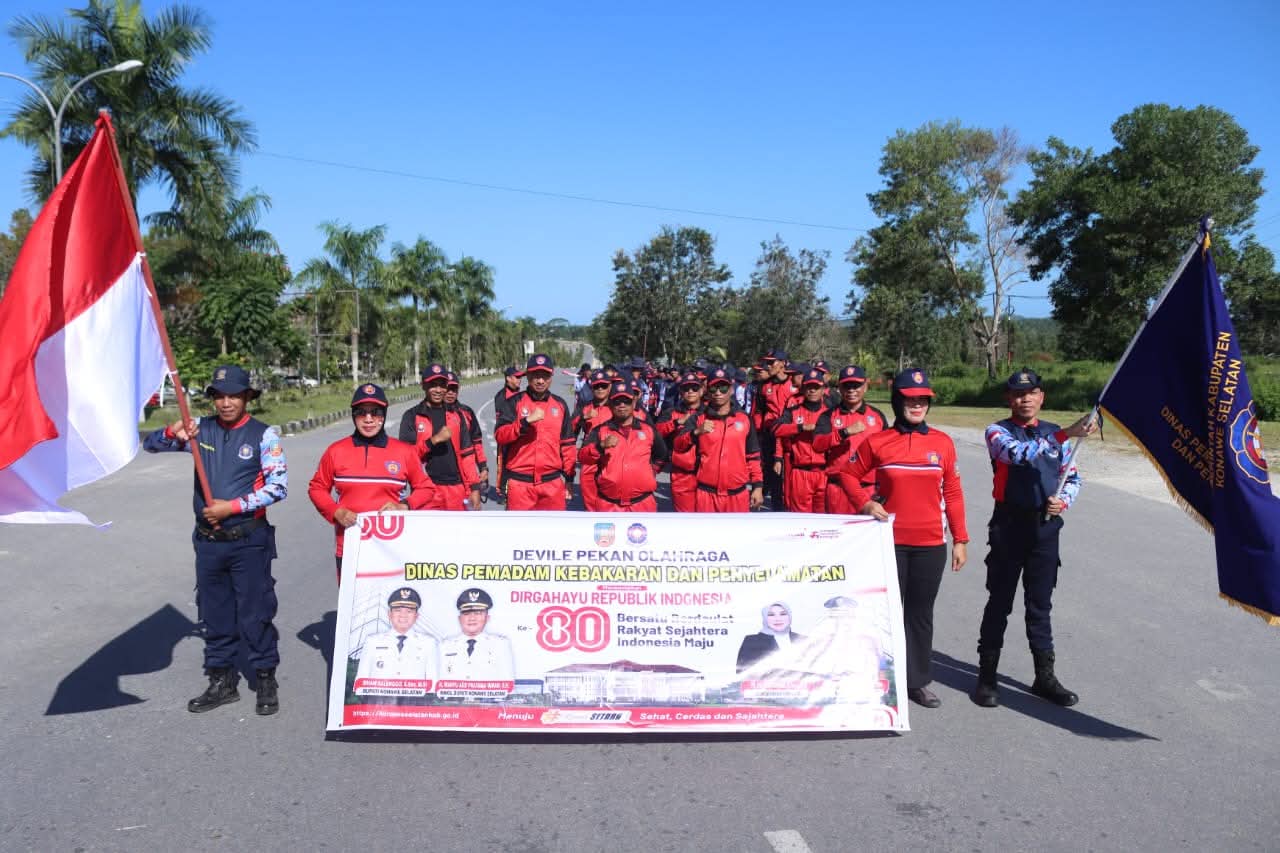 BIKASMEDIA.COM,KONAWE SELATAN – Dinas Pemadam Kebakaran dan Penyelamatan (Damkarmat) Konawe Selatan (Konsel) sukses menyemarakkan defile pembukaan Pekan Olahraga dan Seni (Porseni) dalam rangka peringatan HUT RI ke-80. Tampil dengan dominasi warna merah yang mencolok, Damkarmat Konsel berhasil menarik perhatian penonton di Stadion Lababa Silondae, Andoolo, pada Senin, 11 Agustus 2025.
