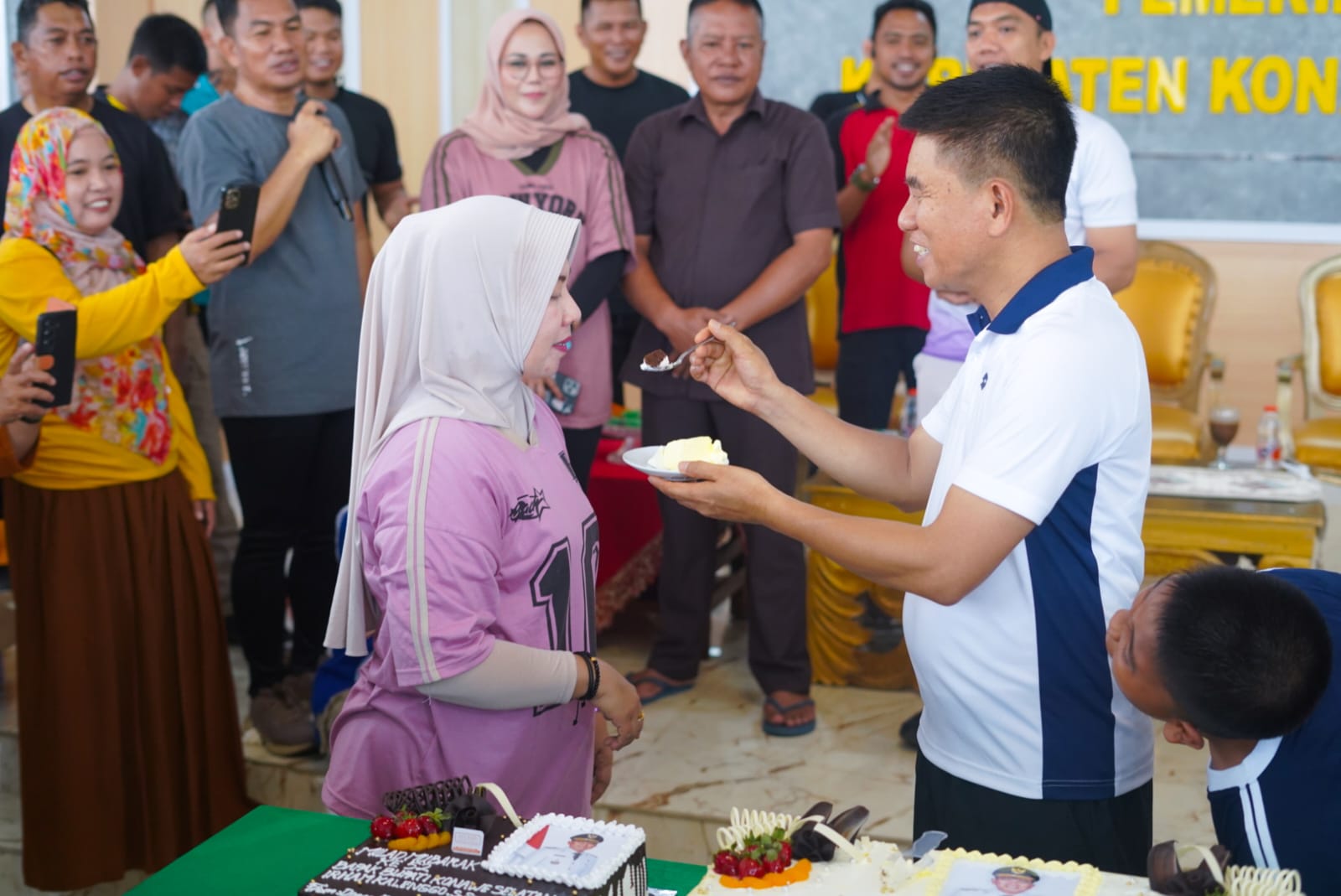 Perayaan dimulai setelah sesi senam pagi. Antusiasme tak terbendung dari sejumlah Kepala Organisasi Perangkat Daerah (OPD) dan Aparatur Sipil Negara (ASN) lingkup Pemerintah Kabupaten Konawe Selatan (Konsel). Mereka berbondong-bondong memberikan ucapan selamat langsung kepada Bupati Irham Kalenggo, yang lahir pada 10 Oktober 1973, disusul dengan prosesi pemotongan kue tumpeng sebagai simbol syukur.
