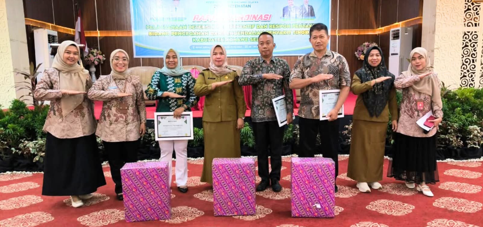 Dalam kegiatan tersebut, Nurlita Jaya juga menyerahkan penghargaan kepada 16 programmer terbaik dan 3 puskesmas terbaik dalam menjalankan program bidang P2P.