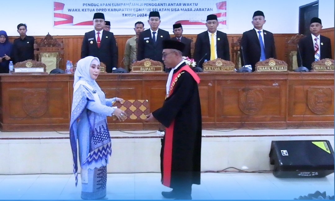 Hj. Yuliati, S.Si. resmi dilantik menduduki kursi pimpinan, menggantikan Ronal Rante Alang, ST. dari Fraksi Partai Nasional Demokrat (NasDem). Prosesi sakral ini dipandu langsung oleh Ketua Pengadilan Negeri Andoolo, Sri Hananta, SH., dan disaksikan oleh 28 anggota DPRD serta jajaran Forkopimda.