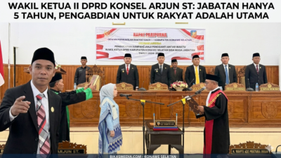 BIKASMEDIA.COM, KONAWE SELATAN – Dewan Perwakilan Rakyat Daerah (DPRD) Kabupaten Konawe Selatan (Konsel) menggelar Rapat Paripurna istimewa dalam rangka Pengucapan Sumpah/Janji Pengganti Antar Waktu (PAW) Wakil Ketua I DPRD Konsel, Senin (06/04/2026).
