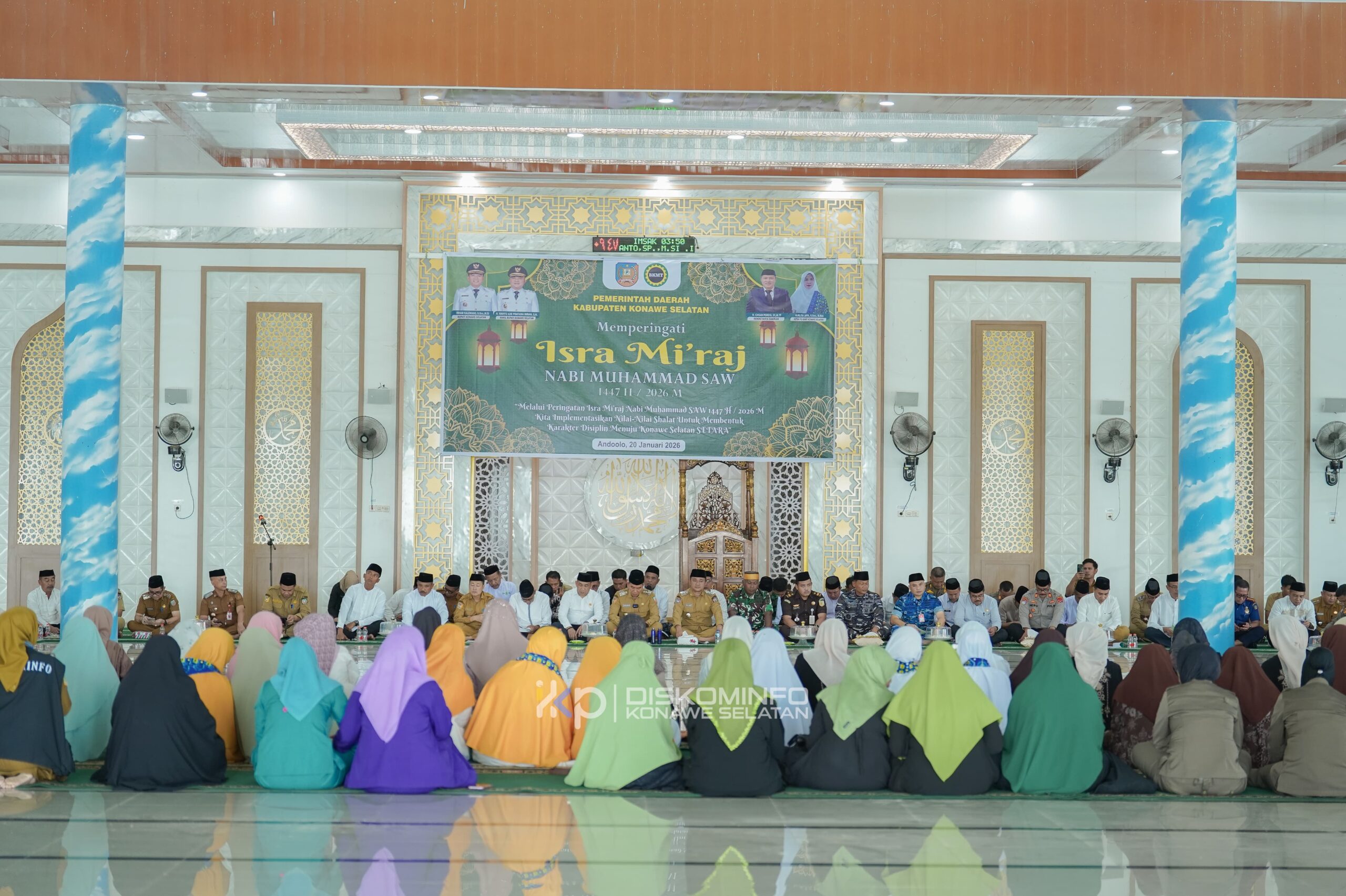 BIKASMEDIA.COM, KONAWE SELATAN — Pemerintah Daerah Kabupaten Konawe Selatan (Konsel) bersama Badan Kontak Majelis Taklim (BKMT) menggelar kegiatan peringatan Isra Mi’raj Nabi Besar Muhammad SAW 1447 Hijriah/2026 Masehi di Masjid Al-Imran, Andoolo, Selasa (20/1/2026).