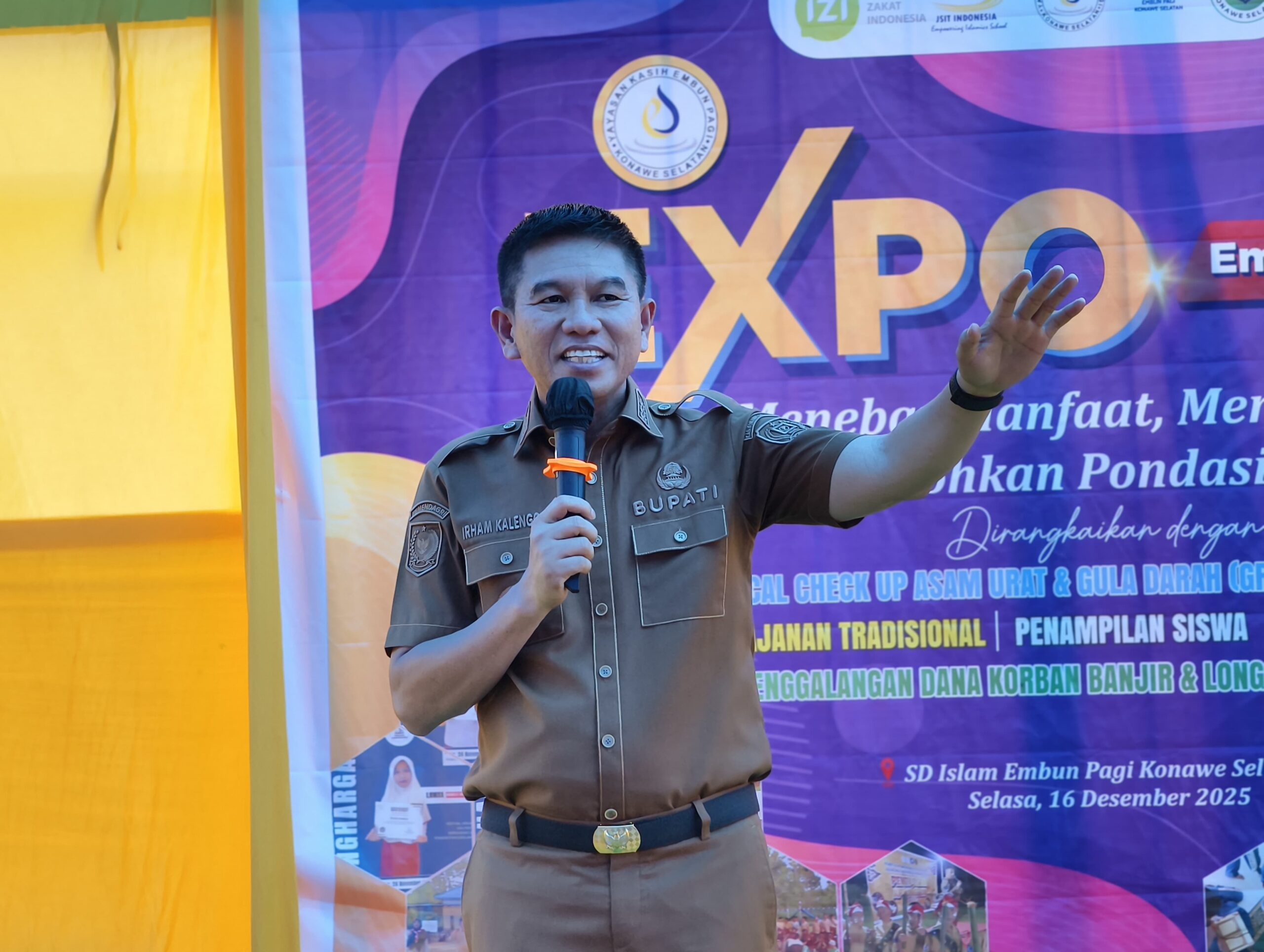BIKASMEDIA.COM, KONAWE SELATAN – Bupati Konawe Selatan, Irham Kalenggo, S.Sos., M.Si, menghadiri dan mengapresiasi peringatan lima tahun Yayasan Kasih Embun Pagi Landono di SD Islam Kasih Embun Pagi, Selasa (16/12/2025). Peringatan hari jadi ini dikemas secara produktif dan inklusif, merangkai kegiatan pendidikan, pemberdayaan UMKM, hingga aksi kemanusiaan.
