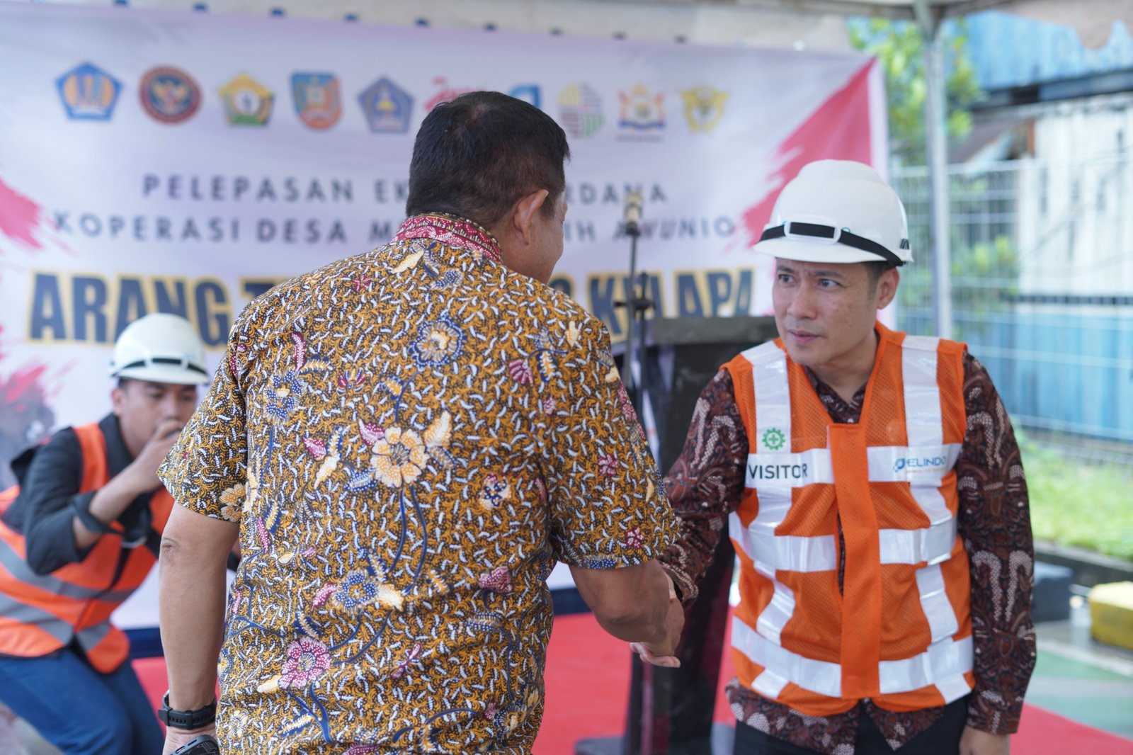 Momentum pelepasan ekspor ditandai dengan prosesi simbolis pemecahan kendi sebagai tanda dimulainya pengiriman arang produksi KDMP Awunio ke pasar internasional.