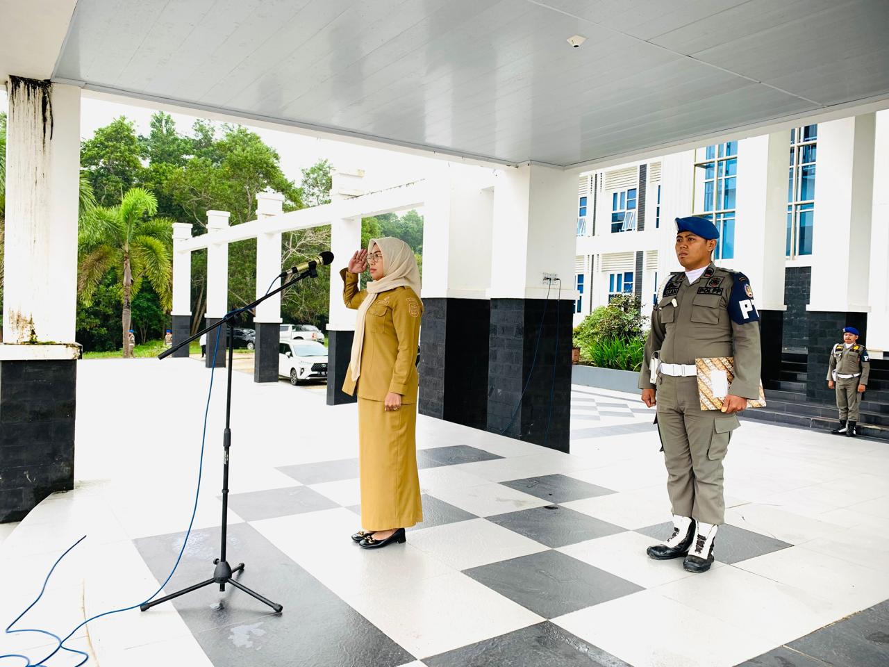 Sekretaris Daerah Kabupaten Konawe Selatan, Hj. ST Chadidjah, S.Sos., M.Si., memimpin langsung upacara tersebut, menekankan semangat gotong royong dan kebersamaan sebagai fondasi utama menuju Indonesia Emas 2045.