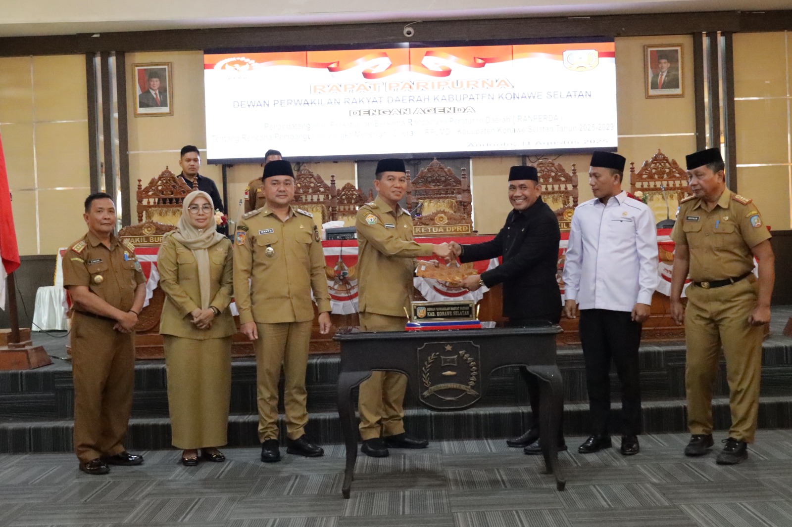 BIKASMEDIA.COM, KONAWE SELATAN – Pemerintah Kabupaten Konawe Selatan (Konsel) bersama Dewan Perwakilan Rakyat Daerah (DPRD) Konsel hari ini, Senin (11/8/2025), secara resmi menandatangani persetujuan bersama terhadap Rancangan Peraturan Daerah (Ranperda) tentang Rencana Pembangunan Jangka Menengah Daerah (RPJMD) Kabupaten Konawe Selatan Tahun 2025-2029. Penandatanganan ini berlangsung khidmat dalam Rapat Paripurna yang digelar di Aula Rapat DPRD Konsel.