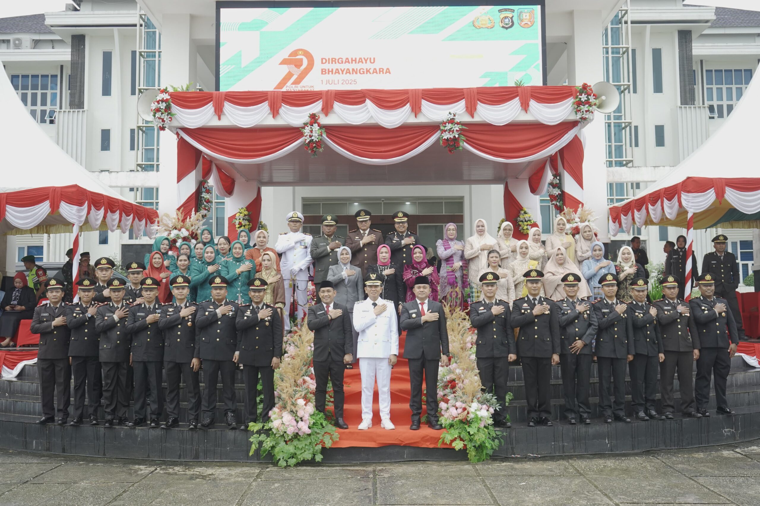 Peserta upacara menunjukkan sinergi dan semangat kebersamaan, terdiri dari personel gabungan Polri dan TNI, Senkom Mitra Polri, Damkar, Satpol PP, Dinas Perhubungan, hingga Saka Bhayangkara, menandai hari bersejarah bagi institusi Polri.
