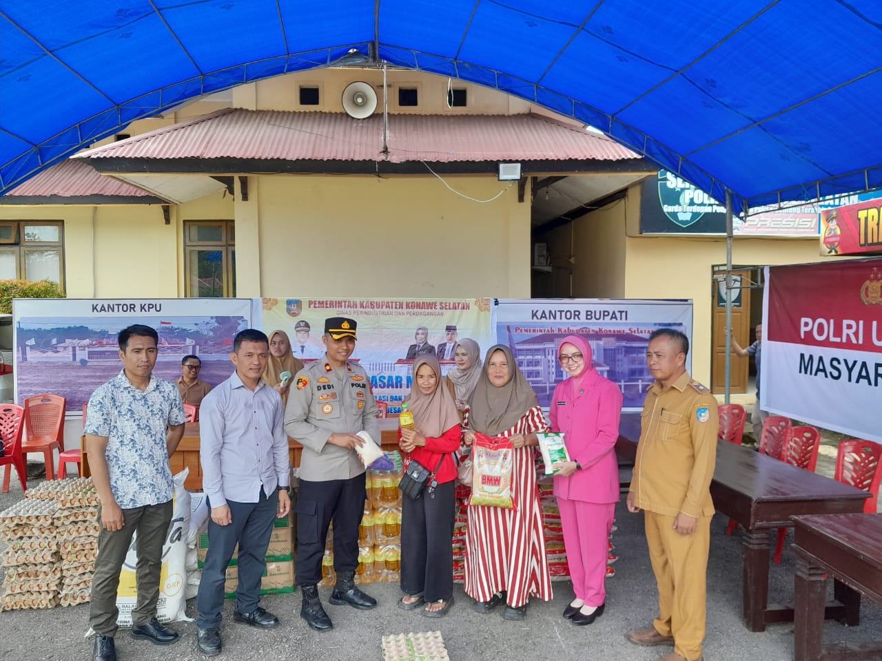 Operasi pasar murah tersebut dilaksanakan di Halaman Mako Polres Konawe Selatan, pada Selasa (18/3/2025).