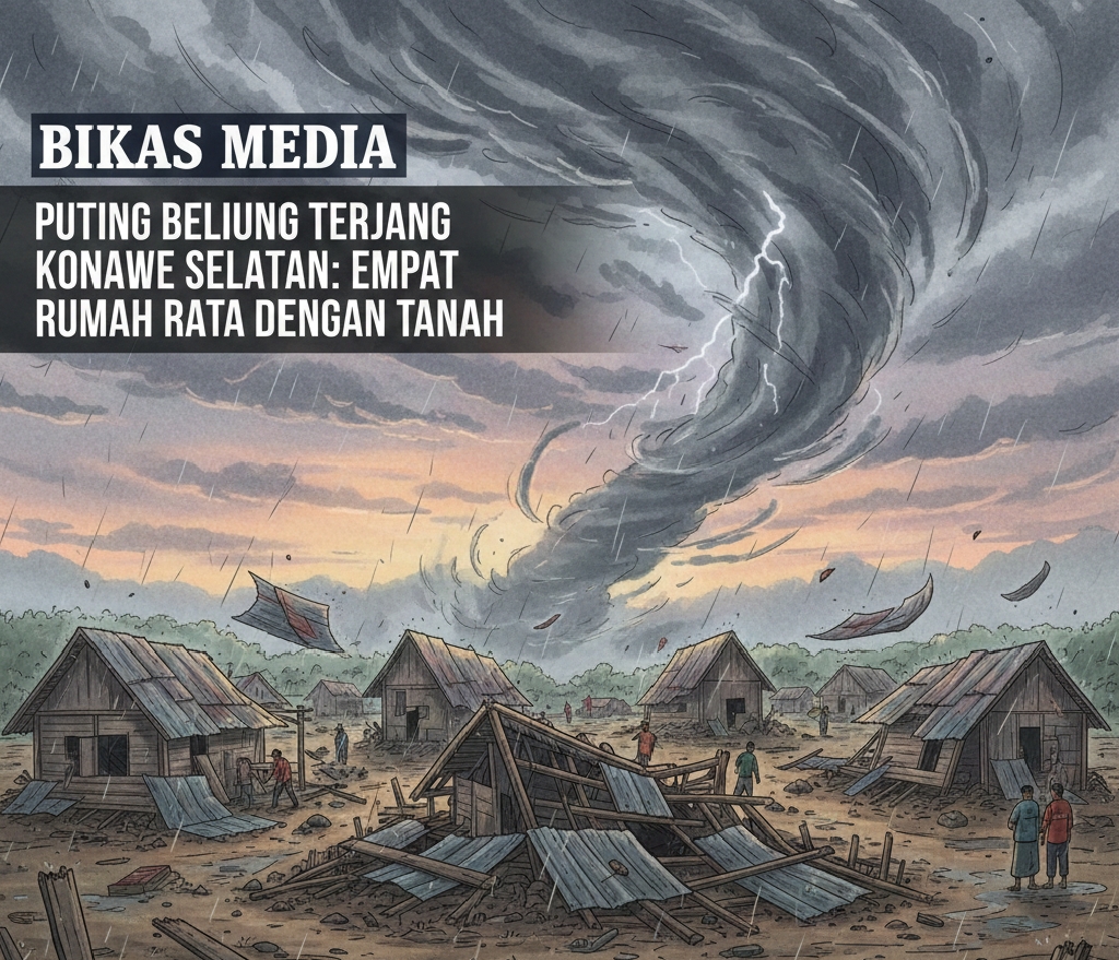 BIKASMEDIA.COM, KONAWE SELATAN – Bencana alam angin puting beliung menerjang wilayah Kecamatan Wolasi dan Kecamatan Baito, Kabupaten Konawe Selatan (Konsel). Akibat peristiwa ini, sedikitnya empat rumah warga di Desa Lelekaa dilaporkan roboh hingga rata dengan tanah.