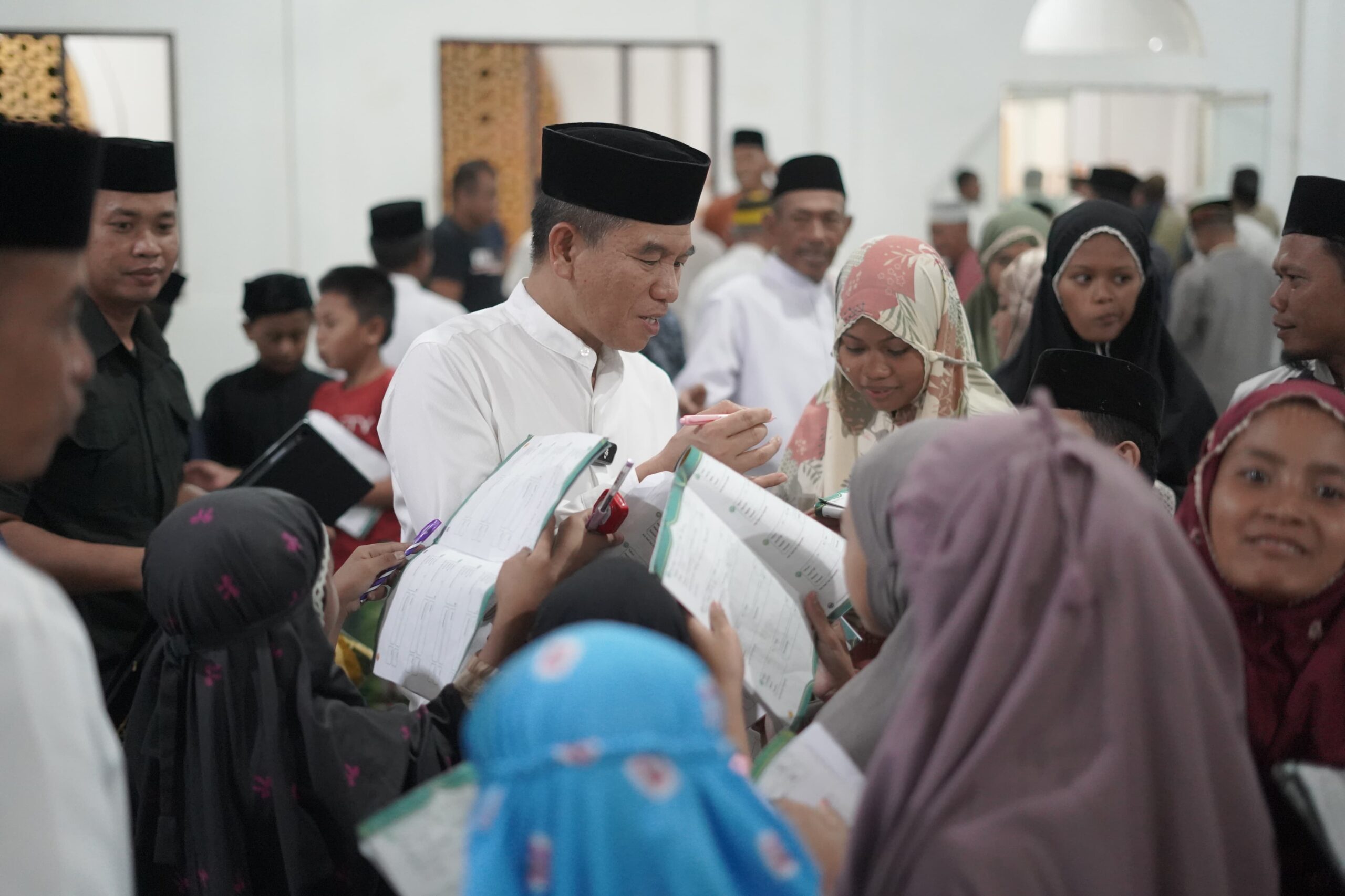 Kegiatan Safari Ramadan tersebut ditutup dengan suasana penuh keceriaan, khususnya saat anak-anak berbondong-bondong menghampiri Bupati Irham Kalenggo untuk meminta tanda tangan pada buku catatan mereka, menciptakan momen hangat yang semakin menghidupkan kebersamaan antara pemimpin dan masyarakat.