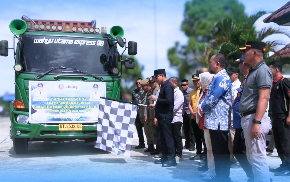 BIKASMEDIA.COM, KONAWE SELATAN – Pemerintah Kabupaten Konawe Selatan bersama Perusahaan Umum (Perum) BULOG Kantor Cabang Bombana resmi melepas pengiriman 1.000.000 kilogram (1.000 ton) beras hasil penyerapan gabah petani padi sawah Konawe Selatan ke Provinsi Sulawesi Utara.