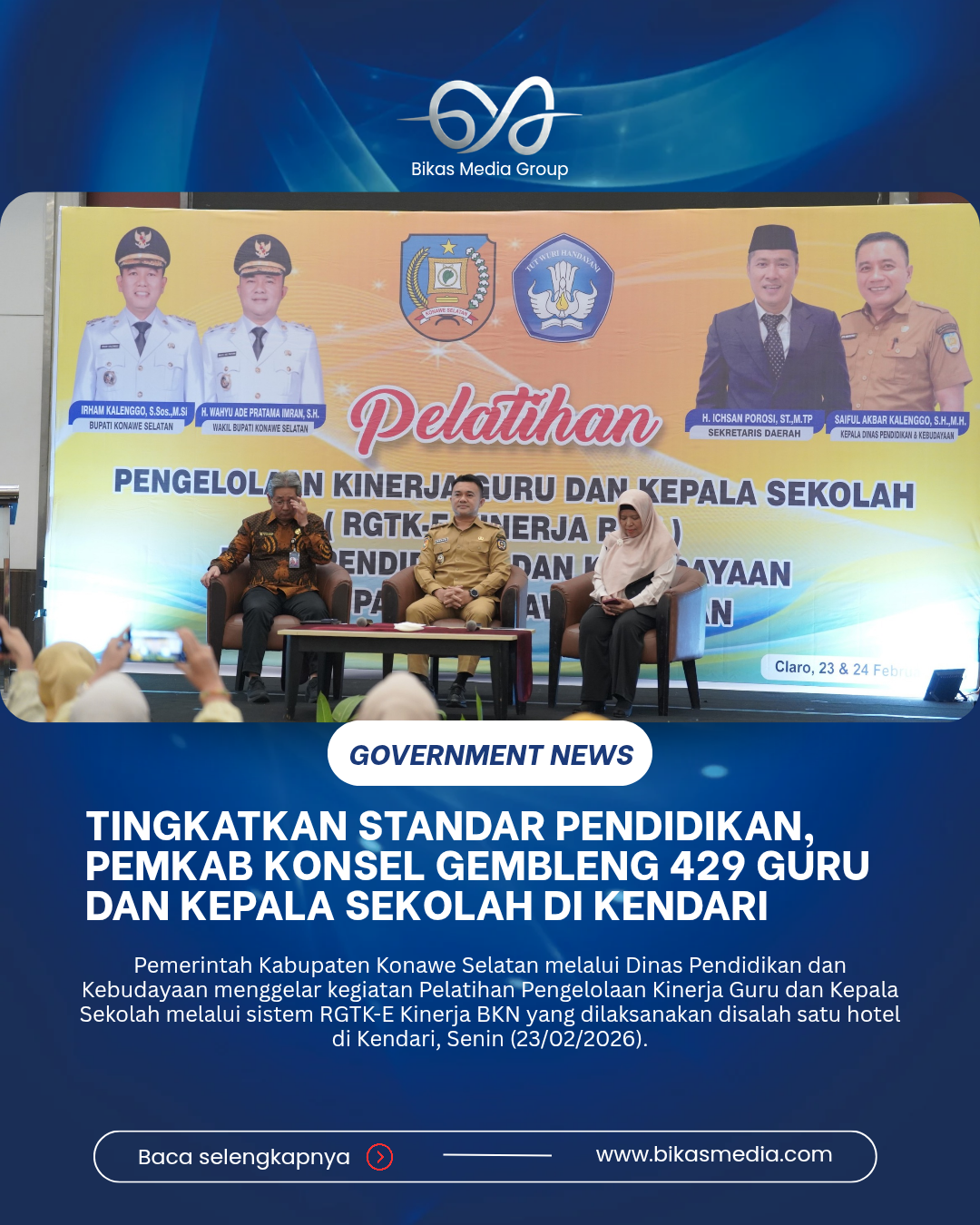 BIKASMEDIA.COM, KONAWE SELATAN — Pemerintah Kabupaten Konawe Selatan melalui Dinas Pendidikan dan Kebudayaan menggelar kegiatan Pelatihan Pengelolaan Kinerja Guru dan Kepala Sekolah melalui sistem RGTK-E Kinerja BKN yang dilaksanakan disalah satu hotel di Kendari, Senin (23/02/2026).