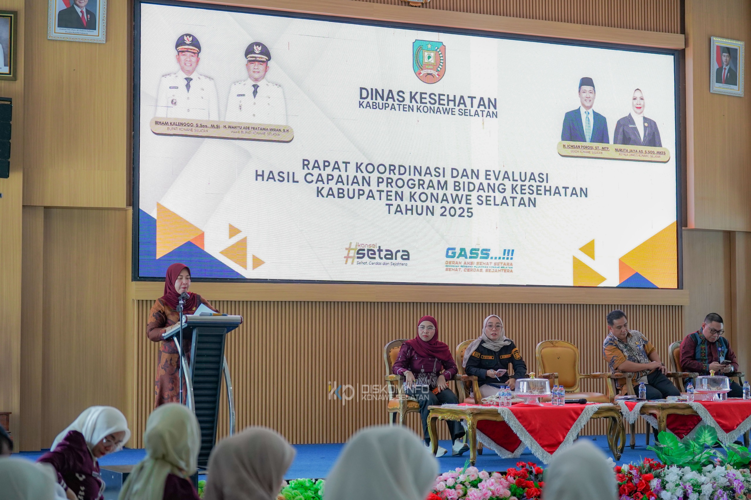 Rapat koordinasi tersebut dipimpin langsung oleh Kepala Dinas Kesehatan Kabupaten Konawe Selatan, Nurlita Jaya AS, S.Sos., M.Kes, dan dihadiri oleh Sekretaris Daerah Kabupaten Konawe Selatan, Sekretaris Dinas Kesehatan, para Kepala Bidang, Kepala Seksi/Sub Koordinator beserta staf lingkup Dinas Kesehatan, seluruh Kepala Puskesmas se-Kabupaten Konawe Selatan, para pengelola program kesehatan, serta seluruh peserta rapat koordinasi.