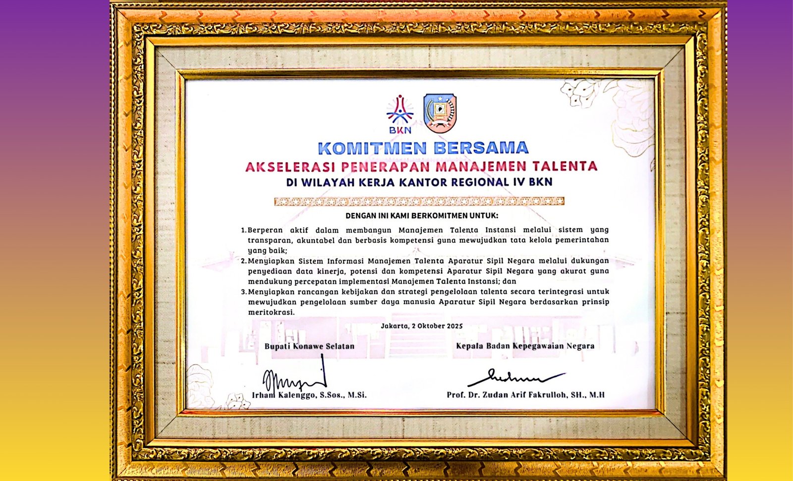 “Komitmen ini bukan hanya sekadar tanda tangan di atas kertas, melainkan bentuk keseriusan kita dalam mewujudkan birokrasi yang profesional, akuntabel, dan mampu menjawab tantangan zaman. Dengan manajemen talenta, setiap ASN Konsel dituntut meningkatkan kapasitas, kapabilitas, serta integritas dalam proses pola karirnya,” ujar Bupati Irham.