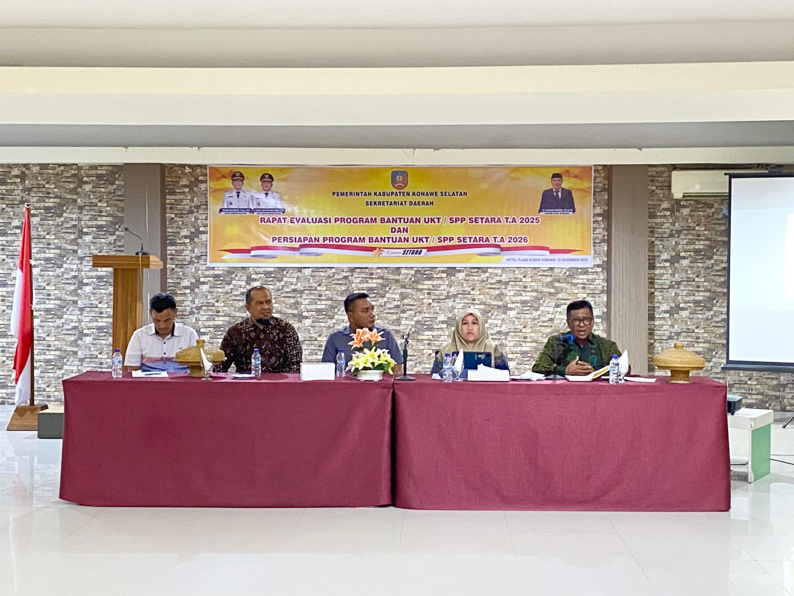 BIKASMEDIA.COM, KONAWE SELATAN – Pemerintah Kabupaten Konawe Selatan (Konsel) sukses menyelenggarakan Rapat Evaluasi Program Bantuan UKT/SPP Setara Tahun Anggaran (TA) 2025 dan Persiapan Pelaksanaan TA 2026. Acara ini berlangsung di Plaza Kubra, Jumat (12/12/2025).